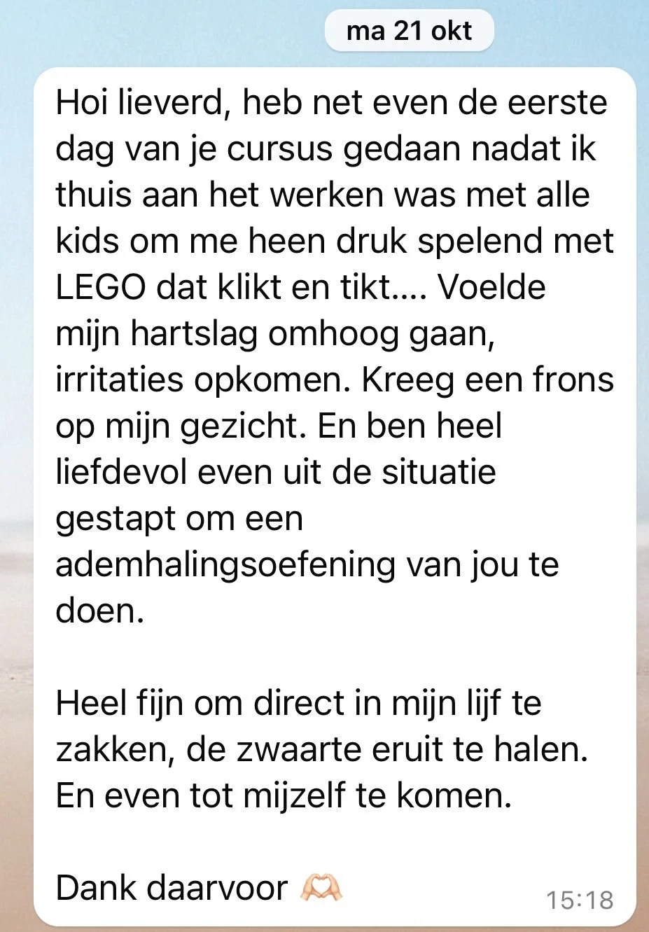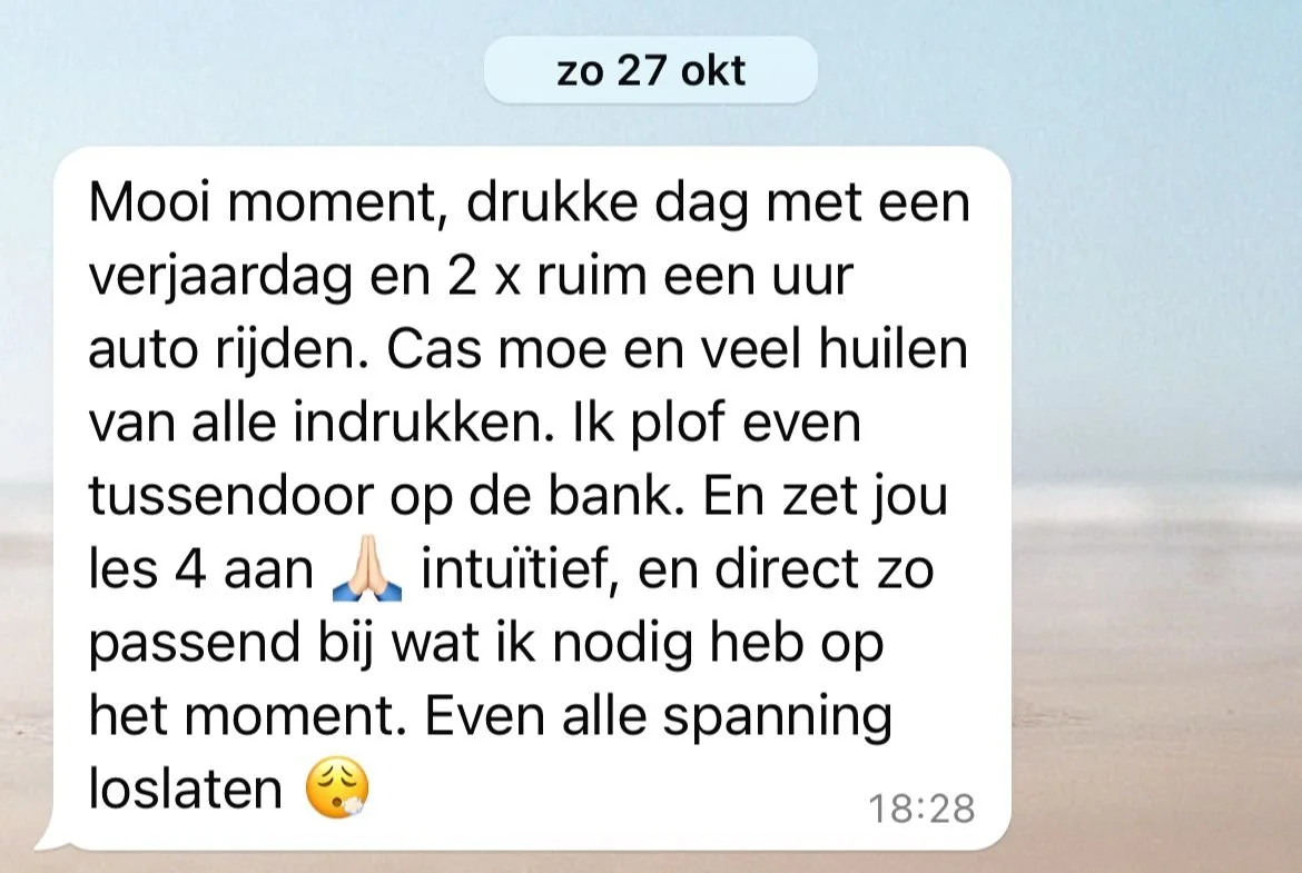 Deze cursus biedt een zachte, veilige plek voor vrouwen om los te laten wat niet meer dient en opnieuw te verbinden met wat écht belangrijk is. Elke dag breng je rust in je routine door adem- en mindsetwerk te integreren, zodat je een diepe reset kunt ervaren.